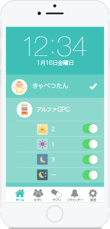 毎日コツコツつづけることが 必要なサプリメント。 飲みわすれしないように アプリで管理してみませんか?