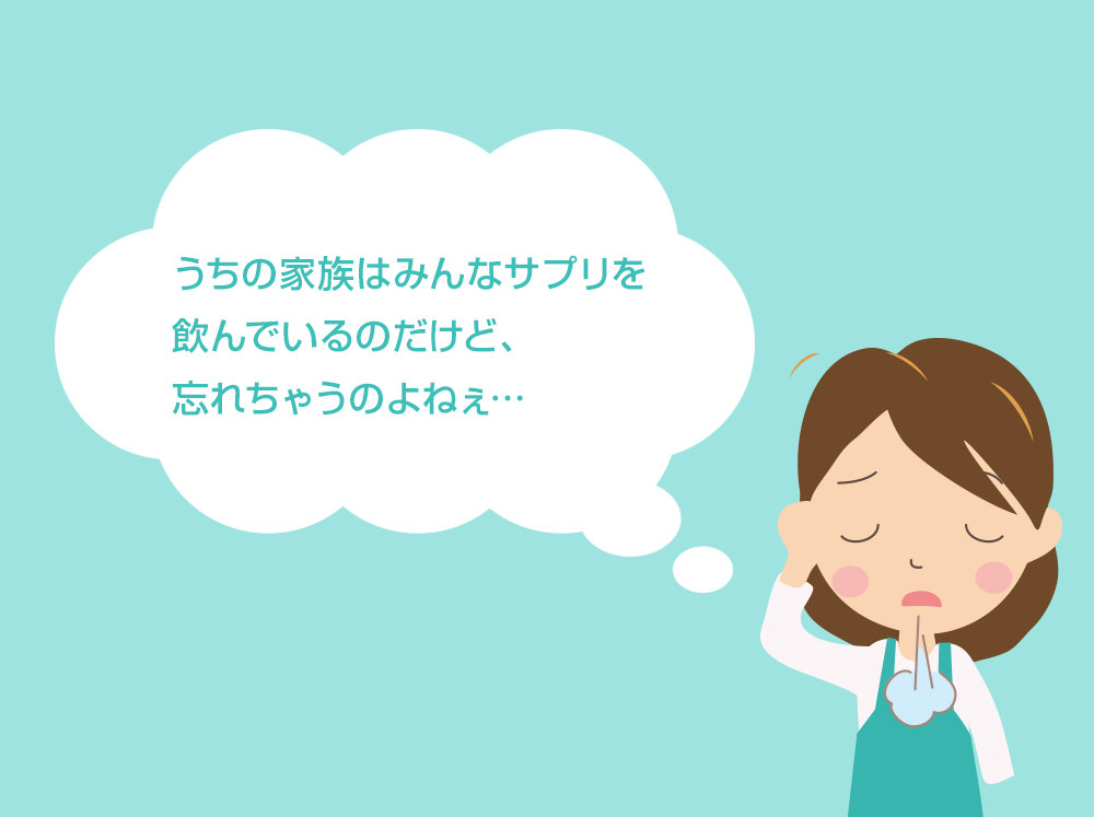 うちの家族はみんなサプリを飲んでいるのだけど、忘れちゃうのよねぇ…