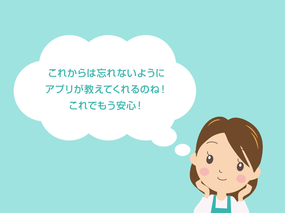 これからは忘れないようにアプリが教えてくれるのね!これでもう安心!